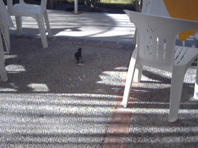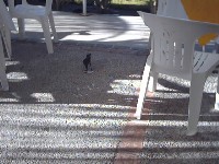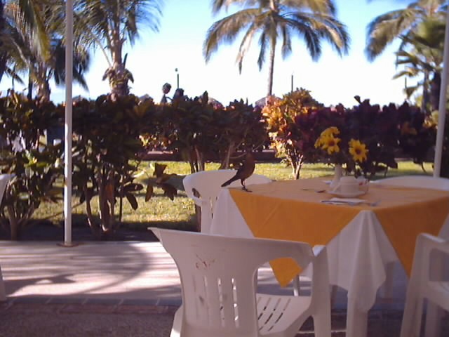 A breakfast guest. Since most of the restaurants are outdoors, birds