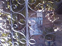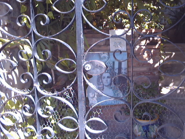 Picture of Elizabeth Taylor behind the entrance gate of their old house.